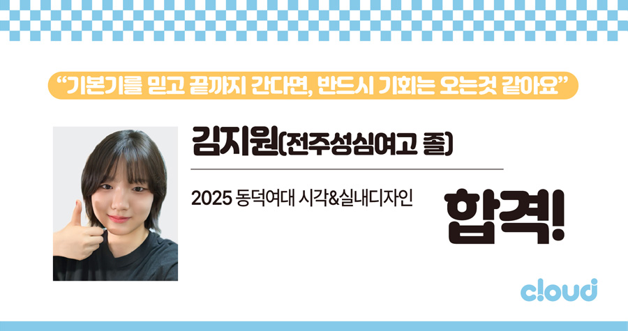 김지원(전주성심여자고등학교 졸업, 정시 동덕여자대학교 시각&실내디자인 합격)