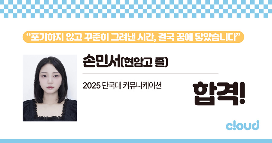 손민서(현암고등학교 졸업, 정시 단국대학교 커뮤니케이션학과 합격)